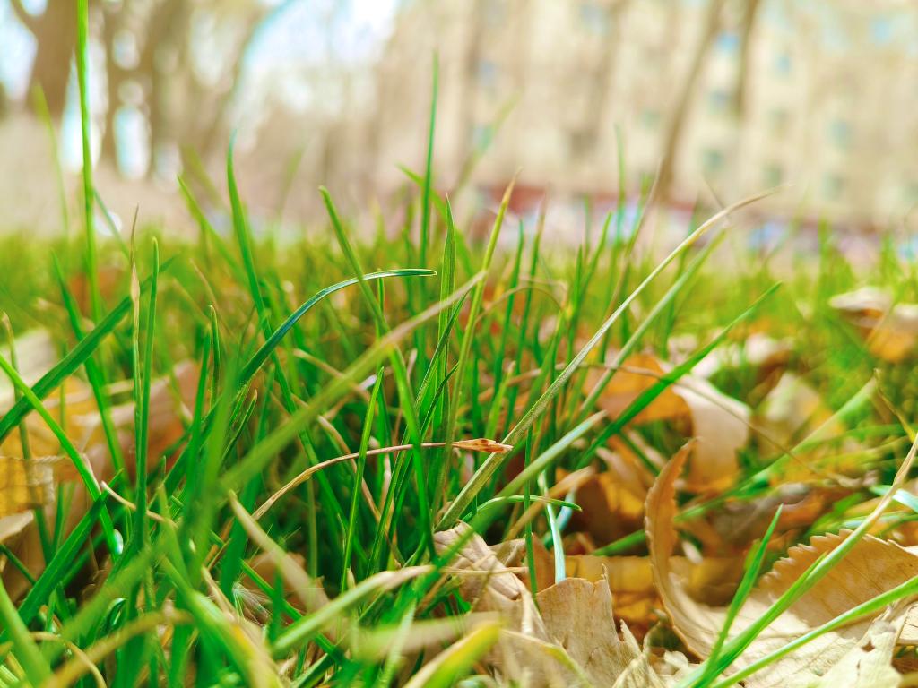 嫩绿草芽破土探头